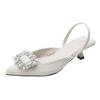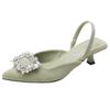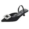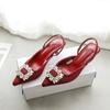 Красные босоножки на высоком каблуке женская летняя обувь 2025 новая остроносая с открытой пяткой женская обувь стразы квадратная пряжка шпилька
