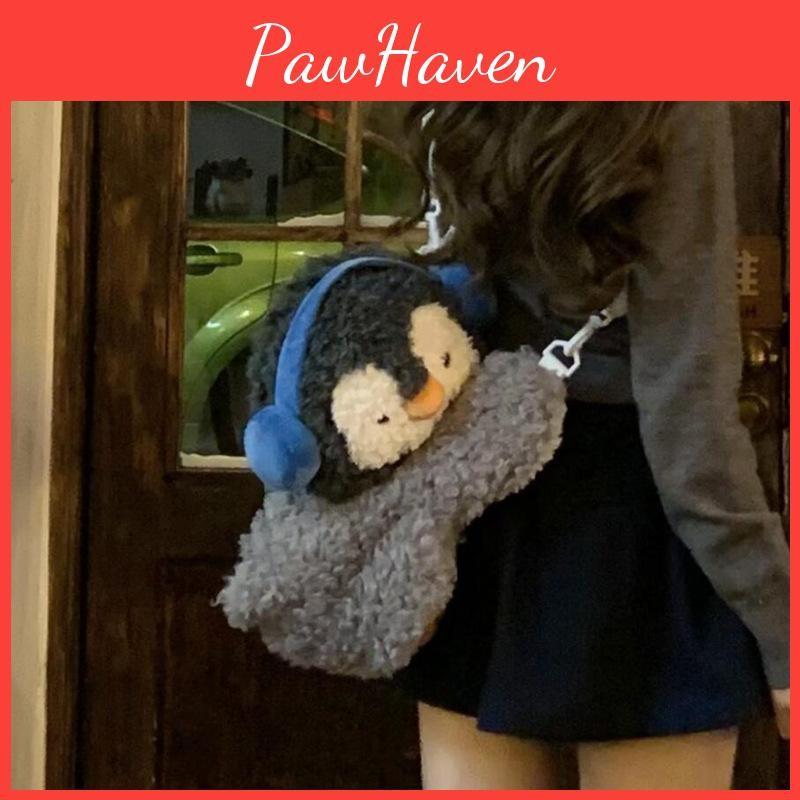 Восхитительная плюшевая сумка-кроссбоди «Маленький пингвин» с открытым передним карманом для детей