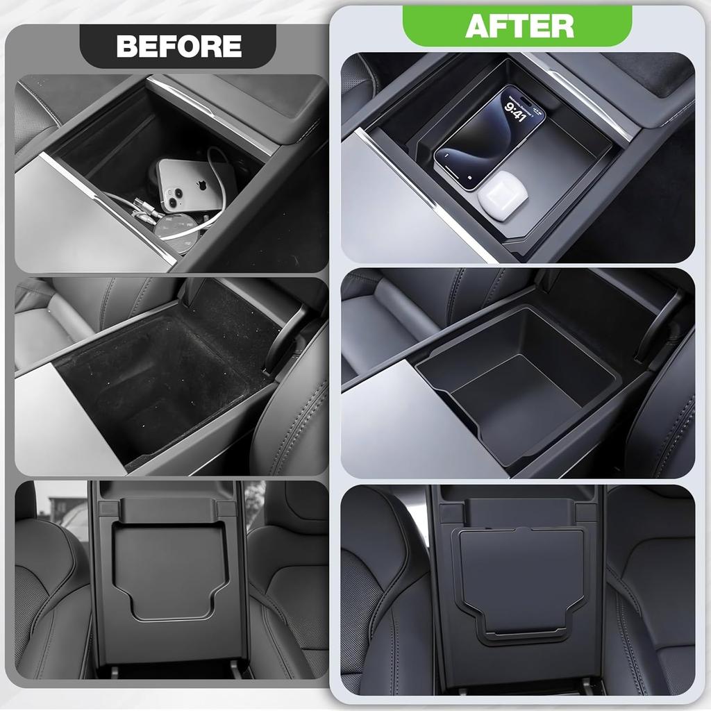 Для Tesla Model Y Juniper Model 3 Highland Органайзер центральной консоли Подлокотник Передний и задний Скрытый ящик для хранения Нижняя силиконовая накладка