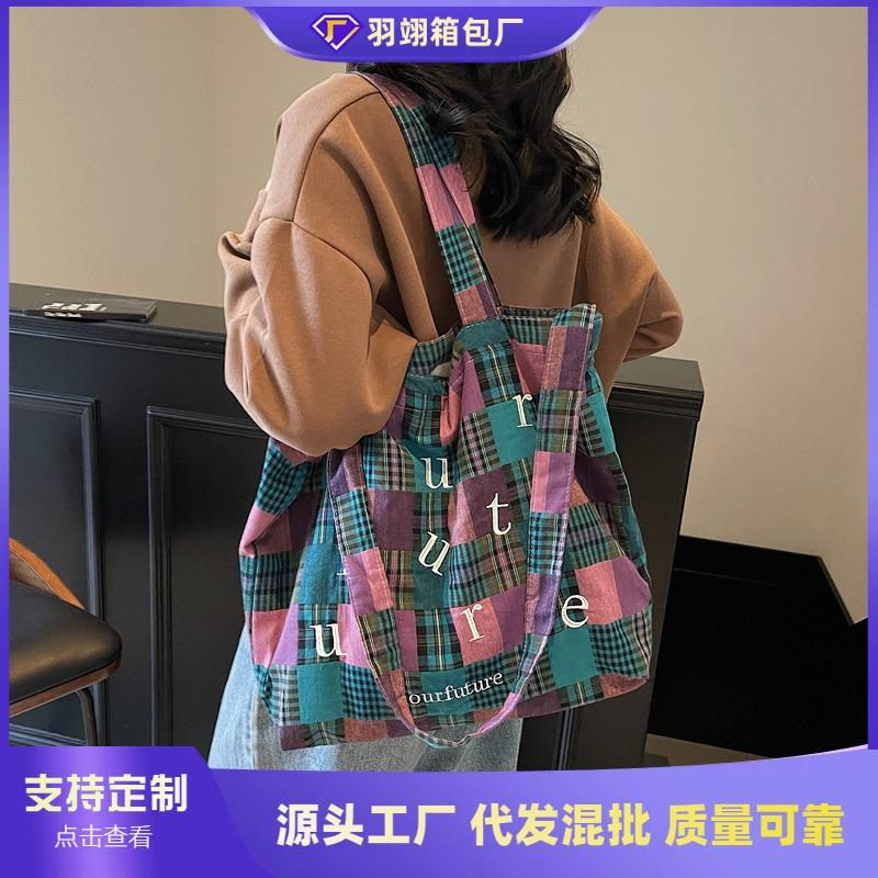 Ретро клетчатая сумка женская новая летняя большая вместительная универсальная сумка-тоут повседневная на плечо мессенджер