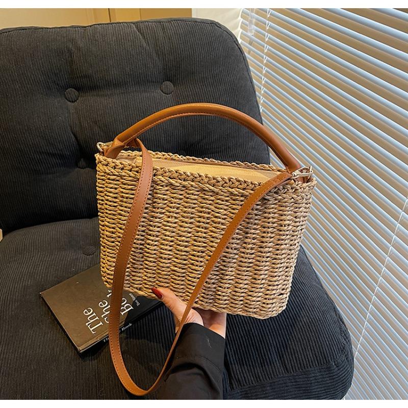 Сумка большой вместимости женская летняя новая плетёная соломенная сумка через плечо для отдыха на море и пляжа