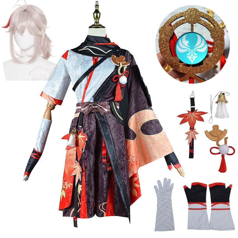 Костюм для косплея Kazuha, парик, Impact Kazuha Kaedehara, наряды для косплея, костюмы для вечеринок