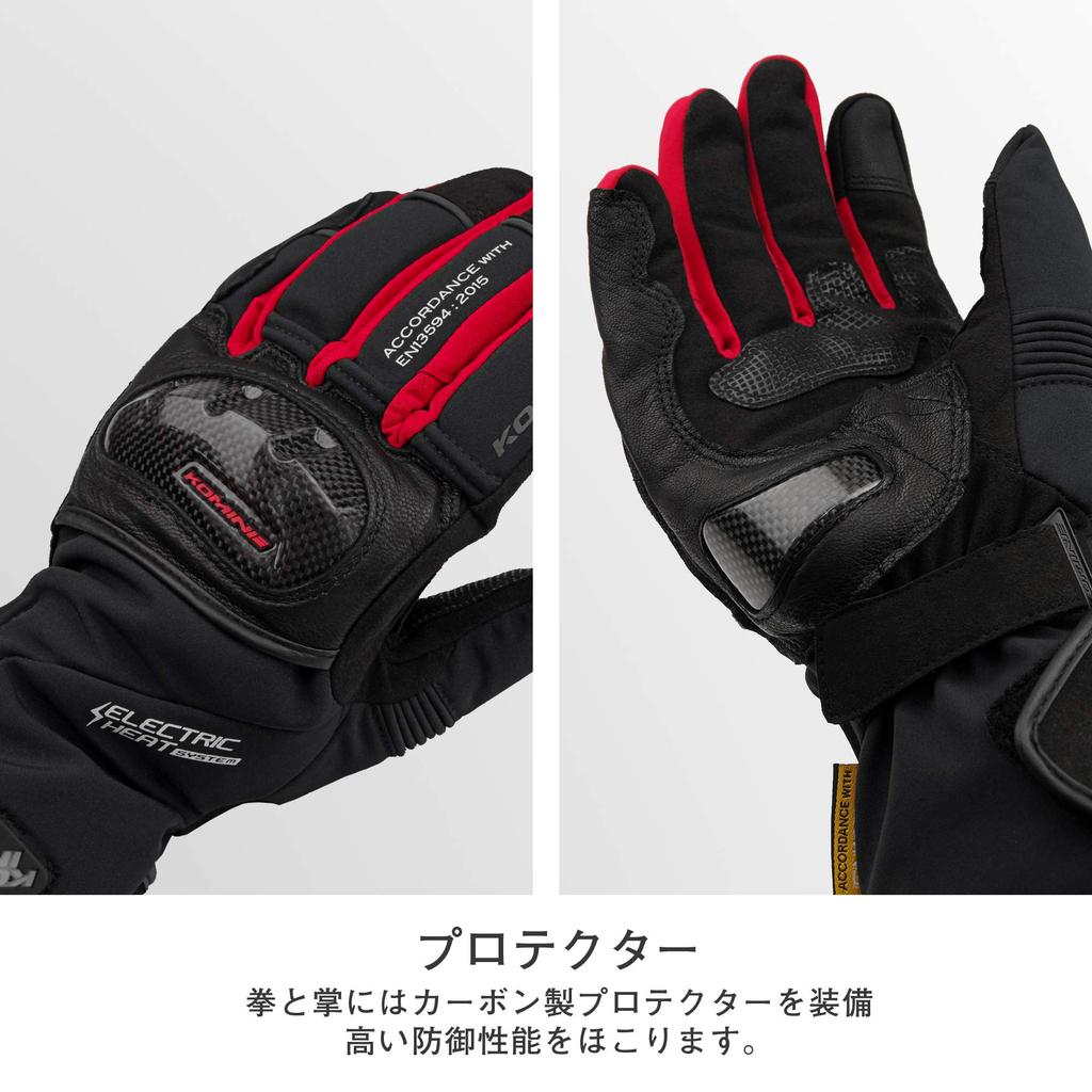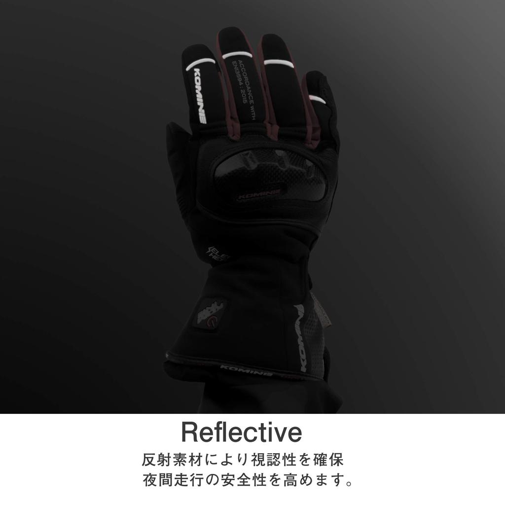 KOMINE Carbon Protect Electric Motorcycle Size L Carbon Stretch Electric for and Spring Gloves, Black, (EK-200), Waterproof, Cold-Weather, Fiber,