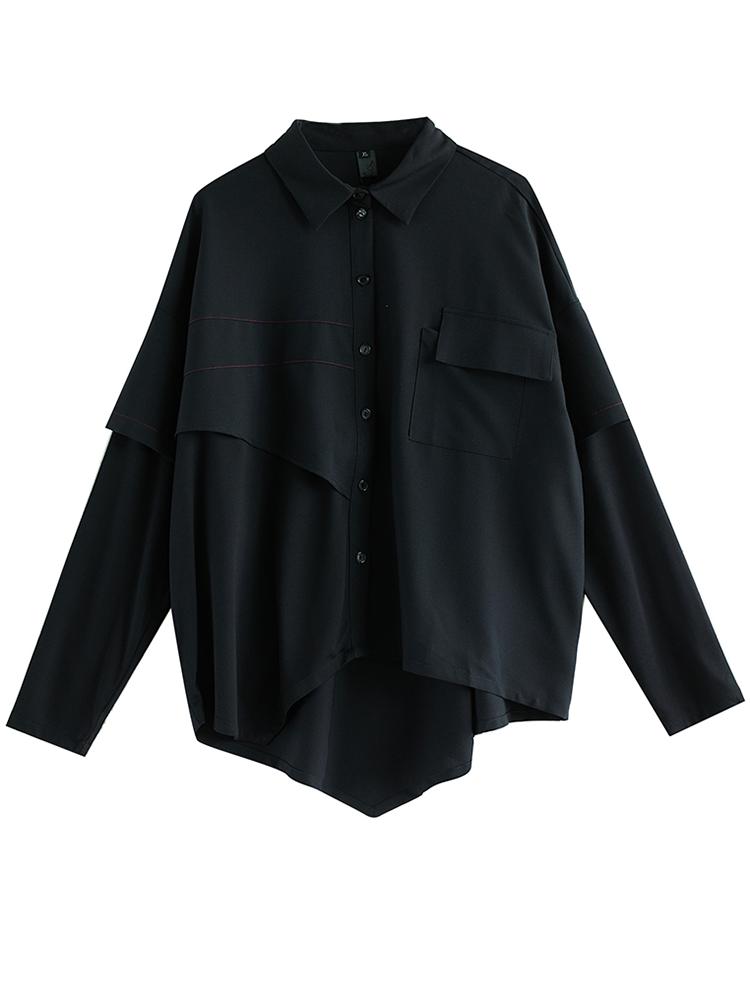 Xitao Черная блузка в стиле пэчворк с неровными вставками для женщин GJ1248