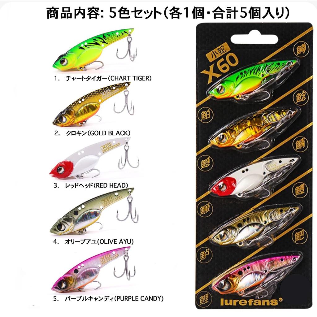 Baby Snake LUREFANS Metal Vibe Lure for Sea Bass and Black Saltwater and Freshwater Assorted Snapper, (5 Colors, 60mm/13.5g)