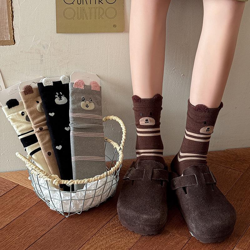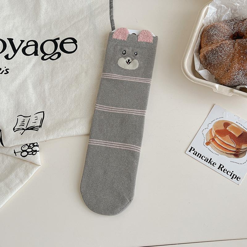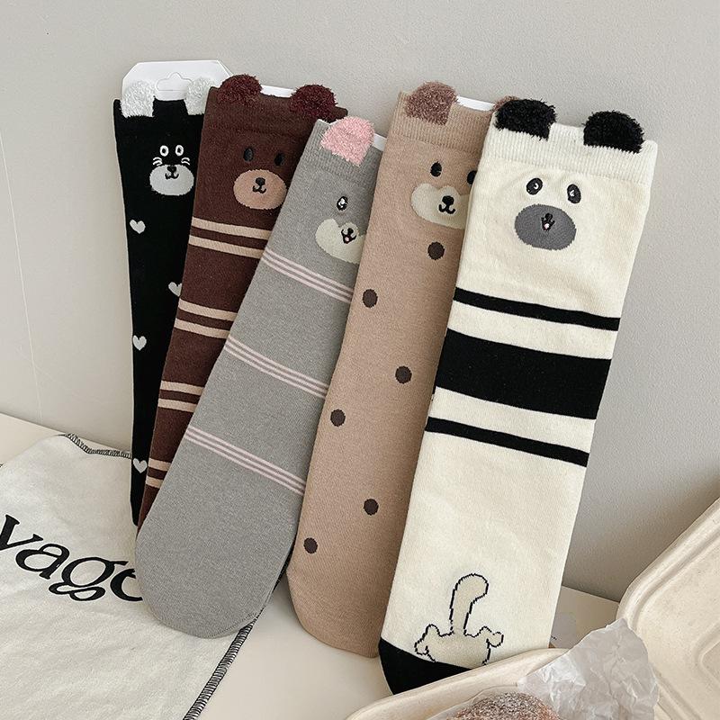Женские осенние мультяшные животные прямые носки средней длины из хлопка