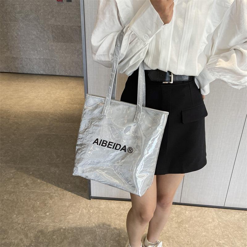 Прозрачная сумка-желе, прочная женская сумка C, новая трендовая сумка под мышку через плечо большой вместимости, простая портативная сумка-тоут.