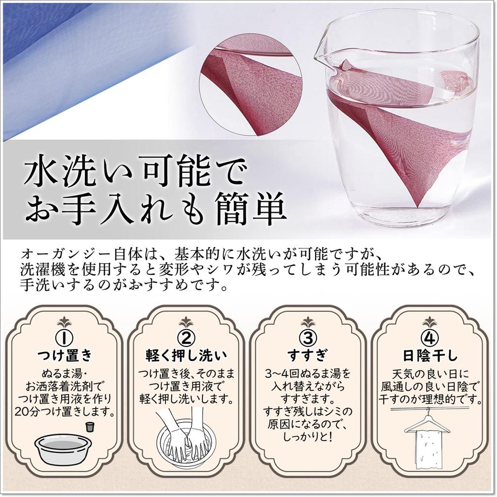 Саму органзу обычно можно стирать в воде, но использование стиральной машины может привести к деформации ткани или сильным складкам, поэтому рекомендуется стирать ее вручную.. Также лучше сделать цикл отжима коротким и сушить в тени в солнечный день.