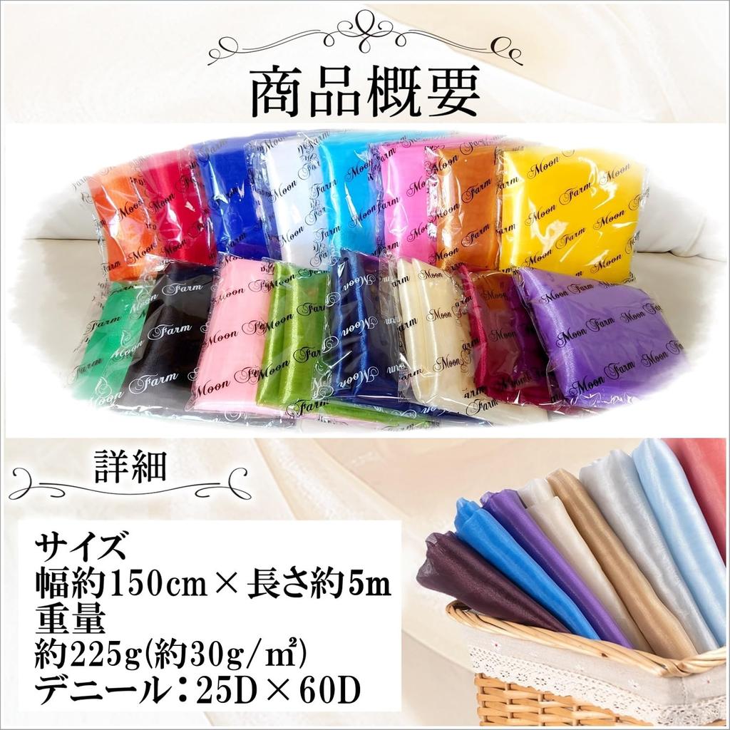 Это стандартная органза с красивым блеском. Ширина: 5 м x 1,5 м, Вес: 225г (примерно 30 г на 1 м²), Толщина пряжи: 25Д х 60Д (Денье)