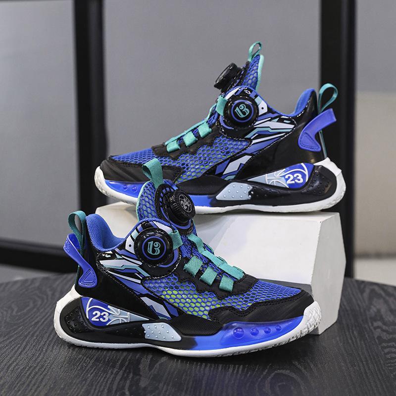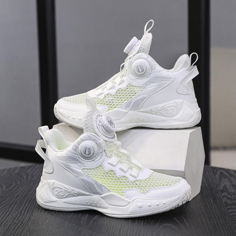 Boys' sneakers mesh breathable 2025 summer new button basketball shoes student fashion middle and older children's shoes trend