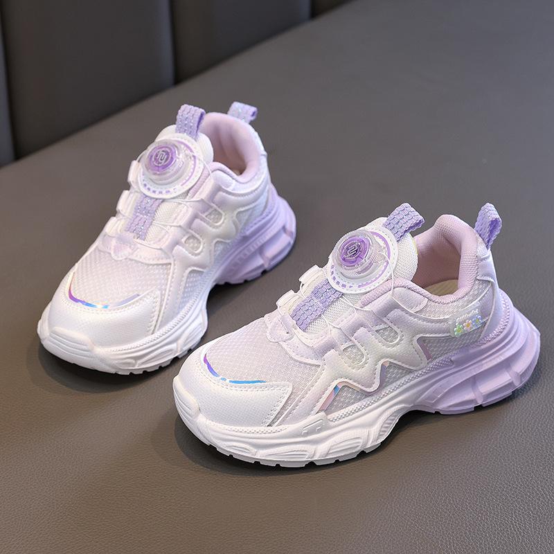 Девочки кроссовки на липучке с крутящейся пуговицей 2025 осень новые беговые детские туфли крутящаяся пуговица девочка принцесса мягкая подошва
