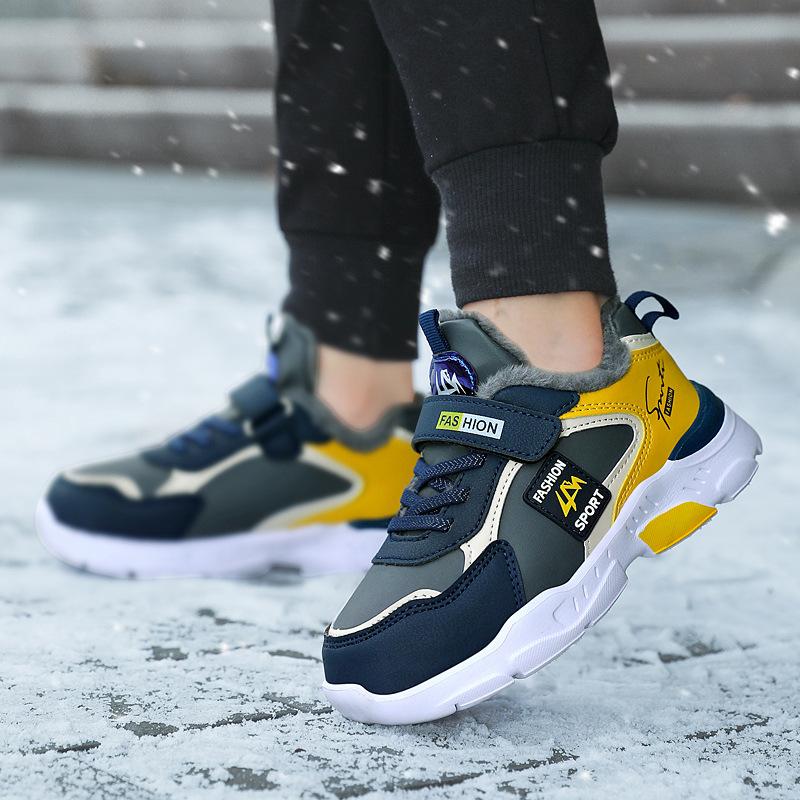 Детская обувь Зимние хлопковые ботинки для мальчиков Кроссовки Флисовые утепленные коньки Теплые кроссовки Ученики начальной школы Средние и большие