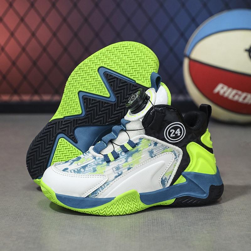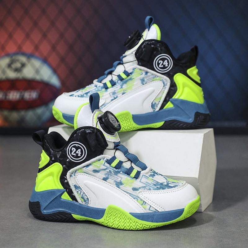 2025 новая детская баскетбольная обувь с вращающейся пряжкой, повседневный уличный спортивный стиль, для мальчиков и девочек, спортивная обувь для внешней торговли