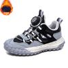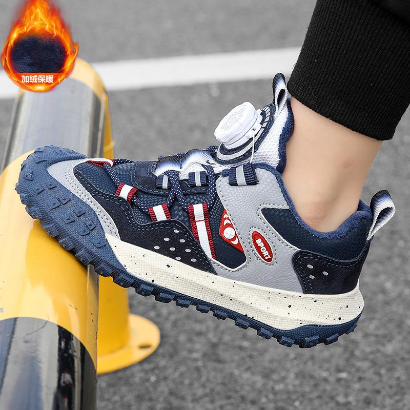 Детская обувь, спортивная обувь 2025 зима новая двуххлопковая теплая кожаная поверхность водонепроницаемая для детей среднего и старшего возраста вращающаяся кнопка нескользящая