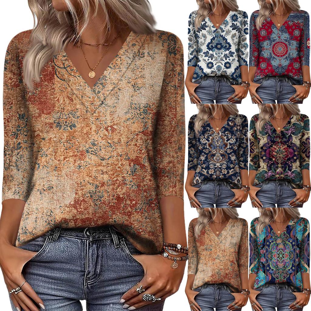 Женские рубашки с рукавом 3/4, топы с принтом и V-образным вырезом, повседневные топы, базовые футболки, блузки, свободные топы — купить товар онлайн с бесплатной доставкой по всему миру!