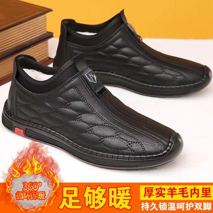 Мужская обувь осень-зима новые кожаные высокие повседневные кожаные туфли мужские дышащие и универсальные бархатные теплые хлопковые туфли для папы