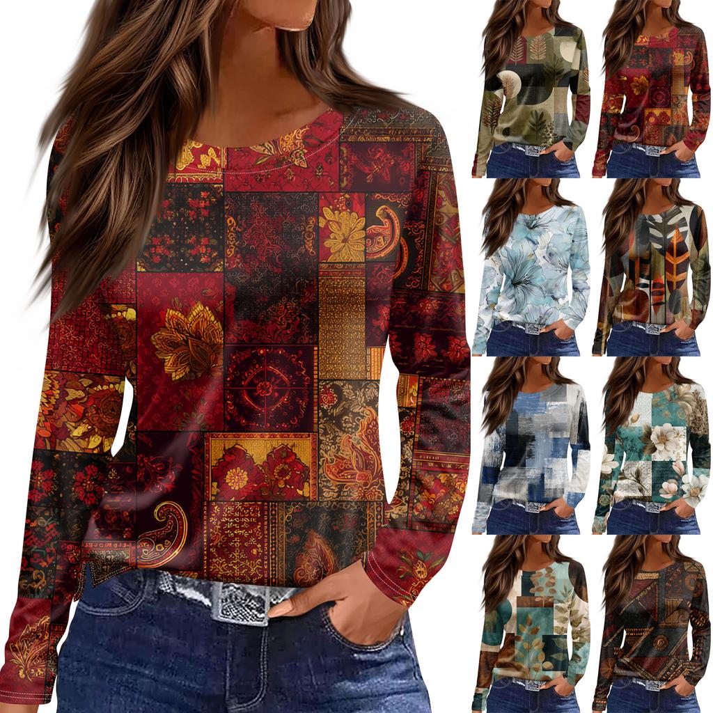 Женская модная блузка с разрезом по подолу, повседневная, в стиле ретро, с цветочным принтом, круглым вырезом и длинными рукавами — купить товар онлайн с бесплатной доставкой по всему миру!