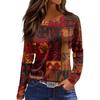 Женская модная блузка с разрезом по подолу, повседневная, в стиле ретро, с цветочным принтом, круглым вырезом и длинными рукавами