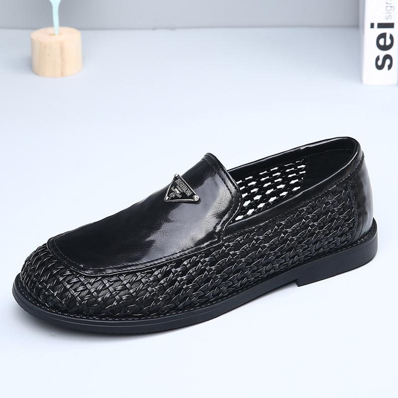 Мужская обувь класса люкс 2025 лето новая ручной работы плетеная ажурная дышащая повседневная кожаная обувь мужские лоферы на одной педали
