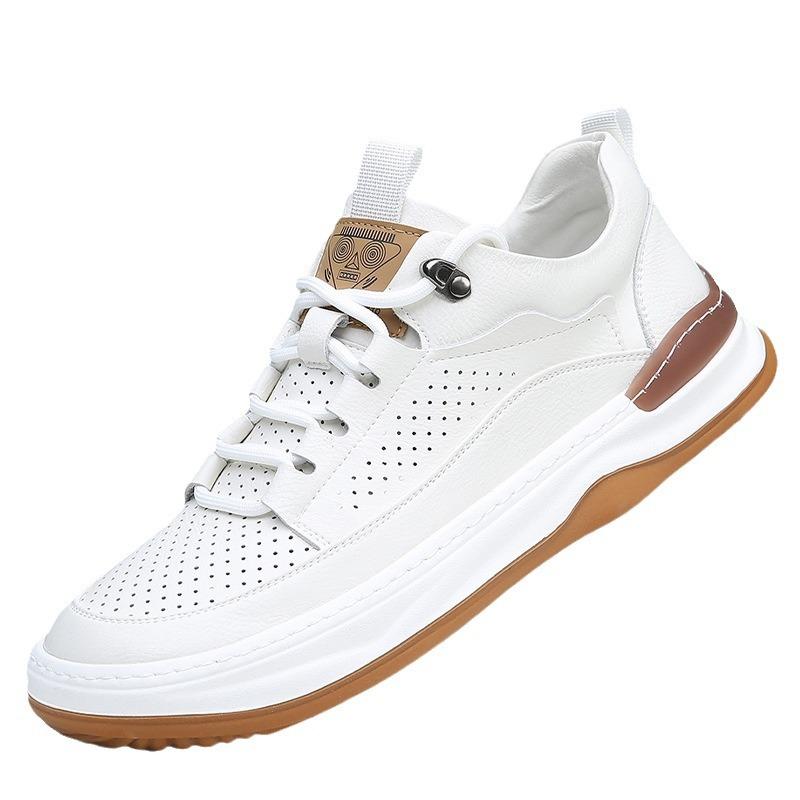 Мужская обувь 2025 года, весна, новые кожаные дышащие спортивные повседневные туфли с отверстиями, модные универсальные мужские туфли с отверстиями из кожи для мужчин