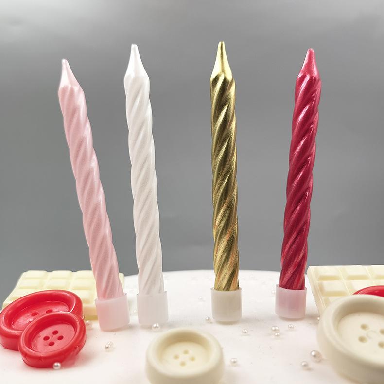 Pack of 6 Threaded Birthday Candles, Plated Metallic Paint, Threaded Colorful Spiral Candles with Base