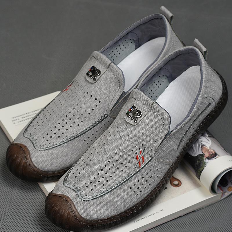 Лето 2025 года, новый тренд, универсальная дышащая мягкая подошва, повседневная обувь Doudou, корейская версия мужских мокасин из ткани