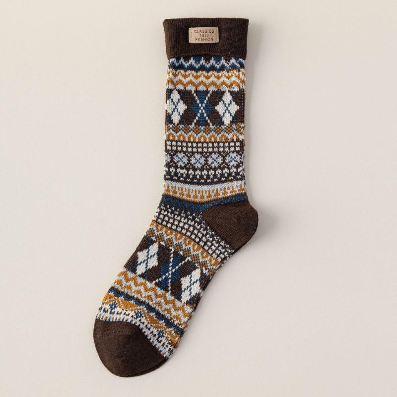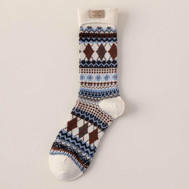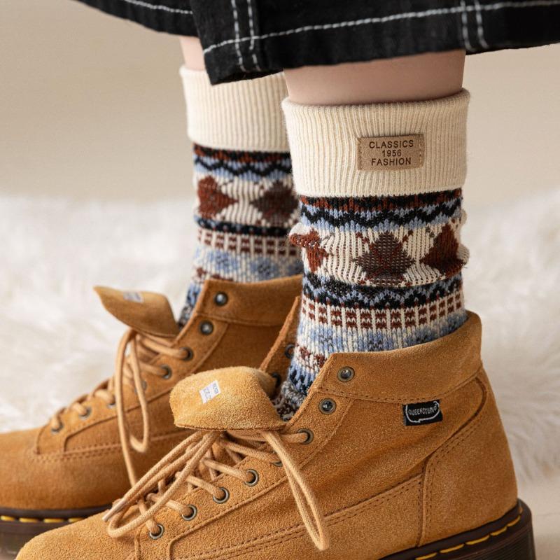 Женские осенне-зимние ретро носки из хлопкового махрового полотна двойного переплетения стандартного этнического стиля