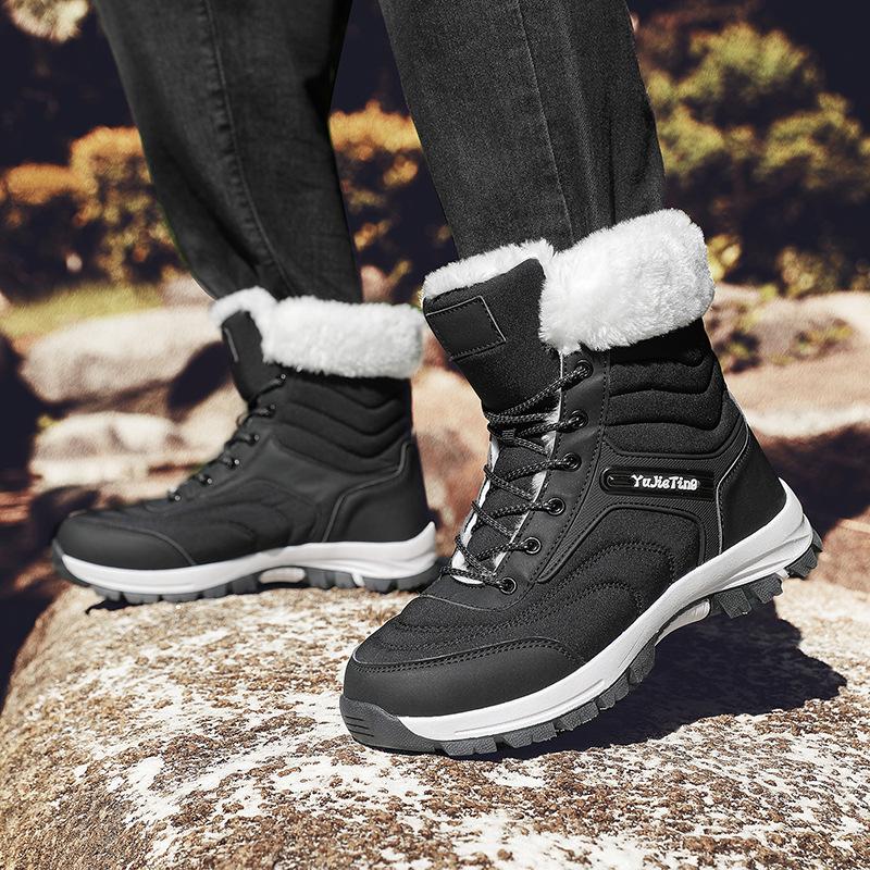 Зимняя внешнеторговая обувь большого размера, плюшевые теплые хлопковые ботинки, износостойкие, ветрозащитные, спортивные, для улицы, короткие ботинки, средней высоты голенища, обувь с высоким верхом