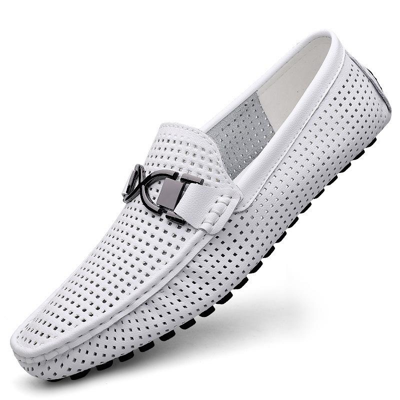Летняя кожаная обувь мужская дышащая тонкая мягкая подошва мягкая кожа мужские сандалии полые отверстия ленивые повседневные туфли-бини