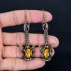 Серьги из тигрового глаза с гальваническим покрытием медью, Серьги из натуральных камней ручной работы, Подарок для мамы, Антикварные украшения