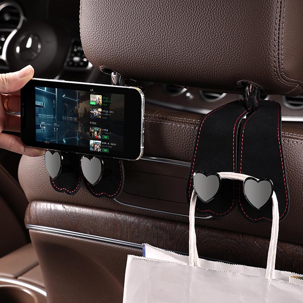 Крючки на подголовник автомобильного сиденья 2 в 1, кожаные в форме сердца, металлические, задний крючок, держатель для сумки и пакета, рюкзака, двойной крючок, вешалка для сиденья