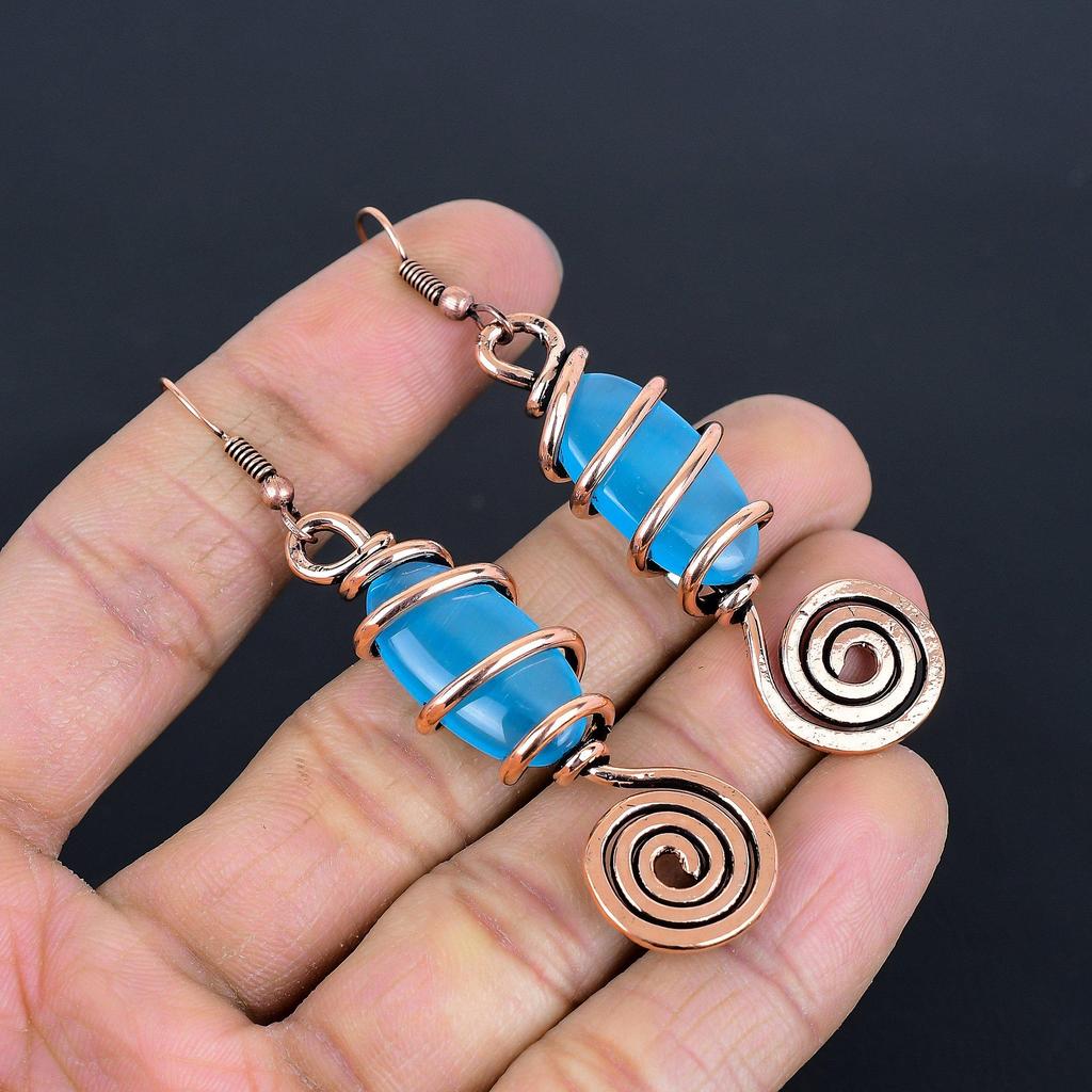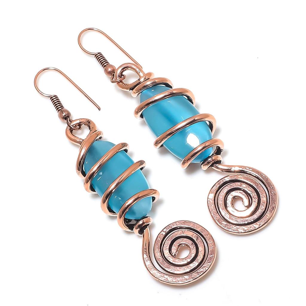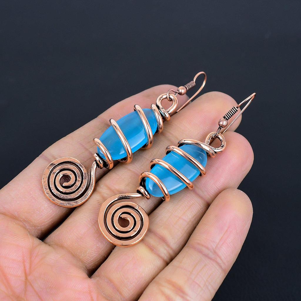 Blue Chalcedony Copper Electroformed Earrings, Handmade Gemstone Earrings Jewelry, Gifts For Wife Brand New Earrings