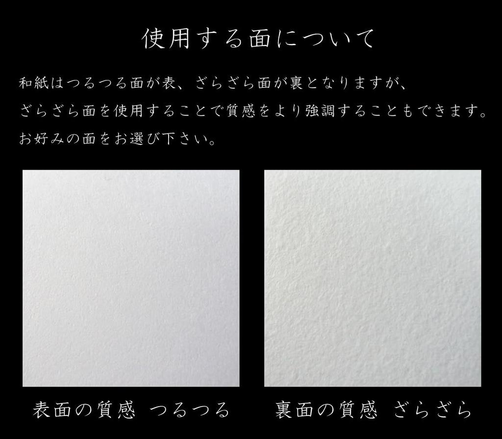 [О том, какой стороной использовать] Обычно гладкая сторона является лицевой, а шероховатая - оборотной, но вы также можете использовать шероховатую сторону для печати, чтобы подчеркнуть текстуру.. Пожалуйста, выберите сторону, которой вы отдаете предпочтение. При печати, пожалуйста, хорошо разрыхлите бумагу васи, чтобы между листами мог задерживаться воздух.