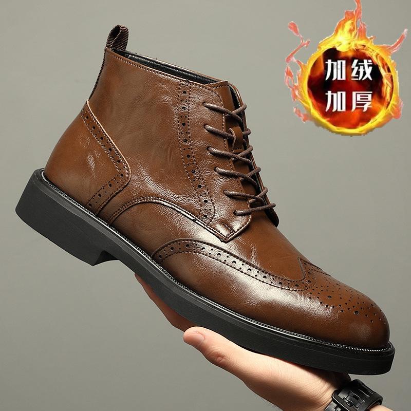 Ботинки Мартин мужские в британском стиле ретро короткие ботинки деловые туфли Брок высокие кожаные ботинки зимние с утолщенной подошвой рабочие кожаные ботинки