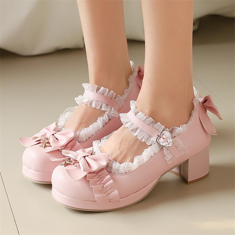 FOREADA Женские туфли-лолита Мэри Джейн с круглым носком, на толстом среднем каблуке, с пряжкой, бантом и оборками, кавайные модные женские туфли, весна-осень 46 — купить товар онлайн с бесплатной доставкой по всему миру!