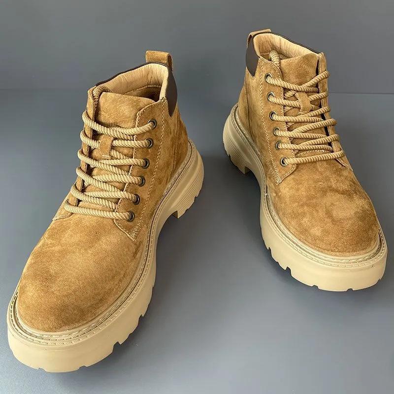 Мужская обувь осень и зима новая коровья кожа британский ретро толстая подошва высокий верх кожа повседневная рабочая рыжая ботинки Мартин