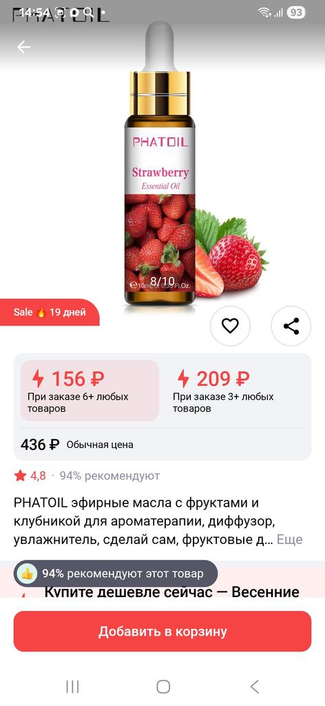 Не получен один товар. Strawberry 10мл. PHATOIL эфирное масло с клубникой для ароматерапии. Очень хочу получить.