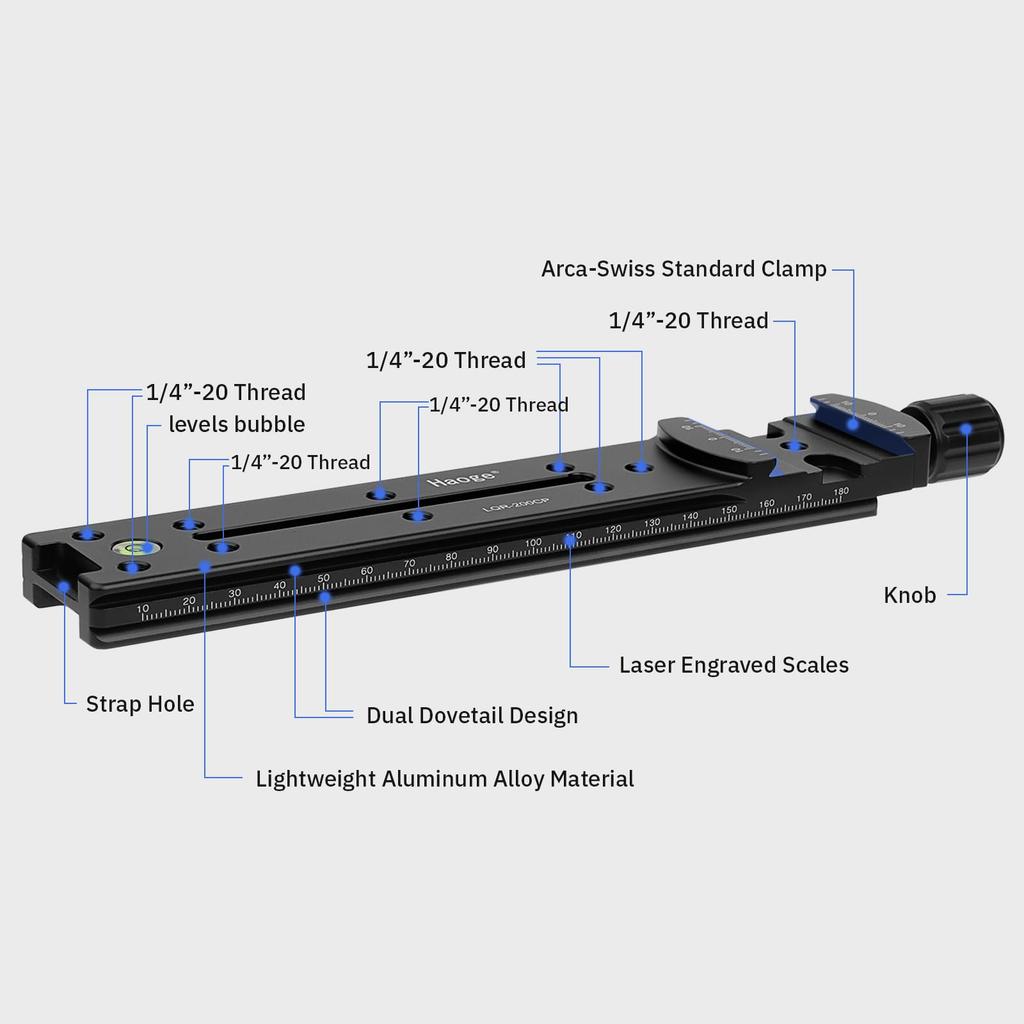 Haoge 200 мм Нодальная слайд-пластина с двойным ласточкиным хвостом для фокусировки с металлической быстросъемной зажимной пластиной для панорамной макросъемки камеры с Arca Swiss RRS