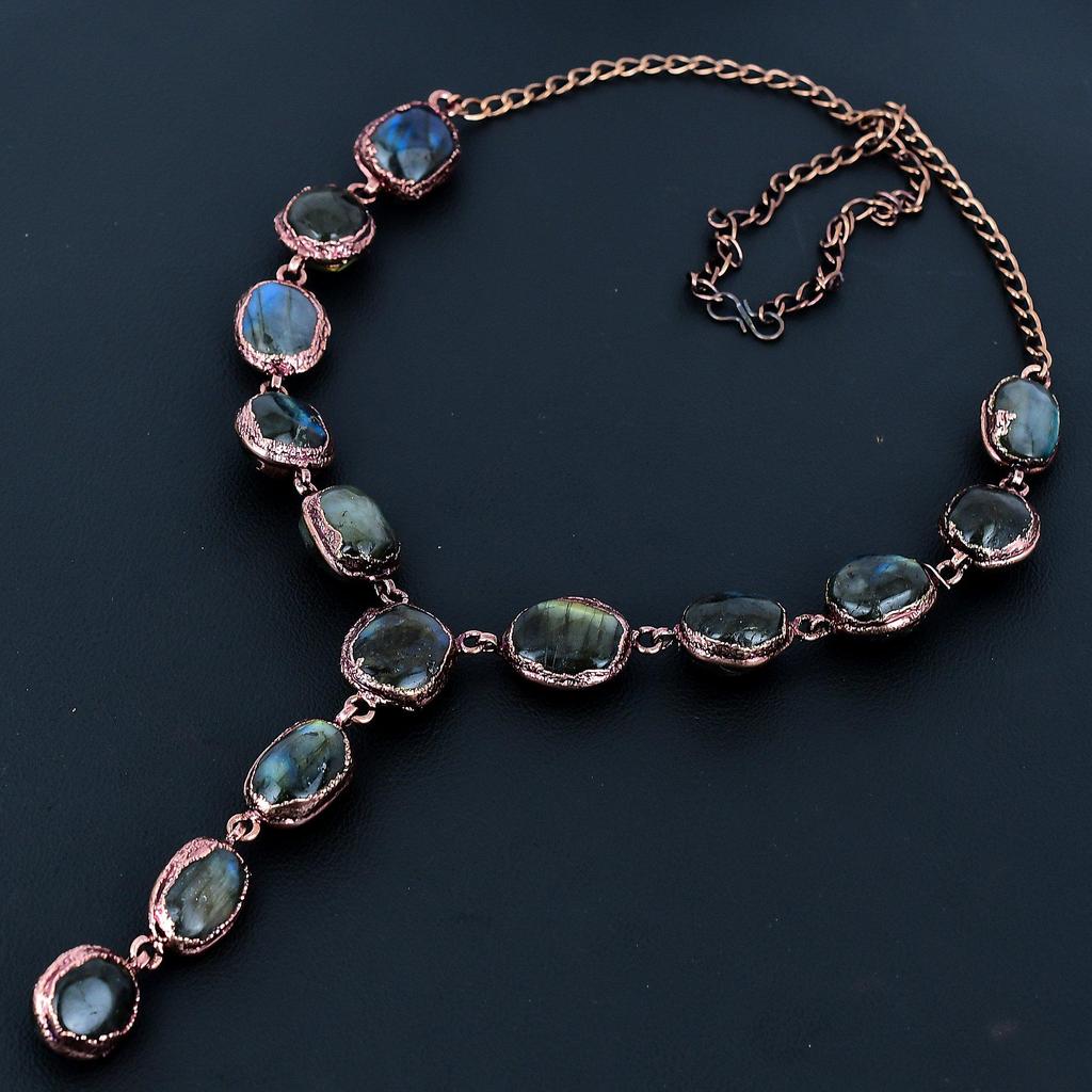 Labradorite Handmade Gemstone Necklace, Copper Electroformed Necklace Antique Jewelry, Adjustable Chain Necklace Engagement Gift