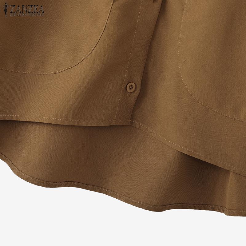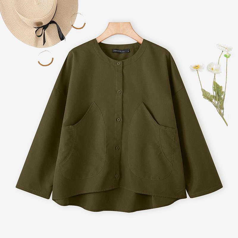 ZANZEA Женская повседневная блузка с круглым вырезом, свободного кроя, с длинным рукавом, однотонная
