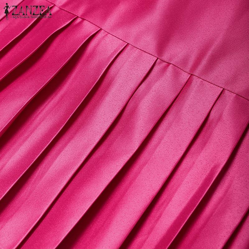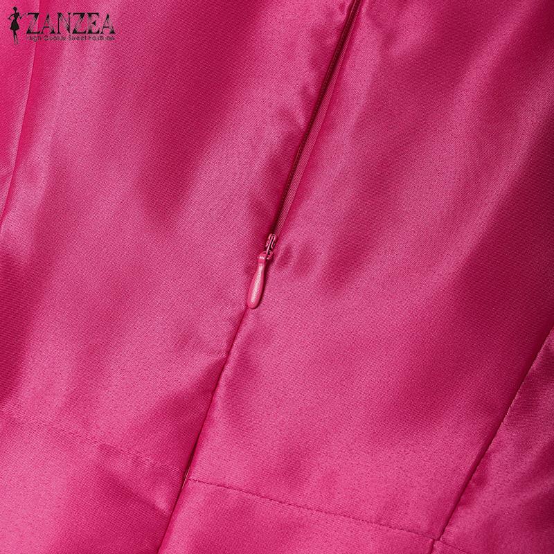 ZANZEA Женское повседневное летнее платье из сатина с круглым вырезом и короткими рукавами