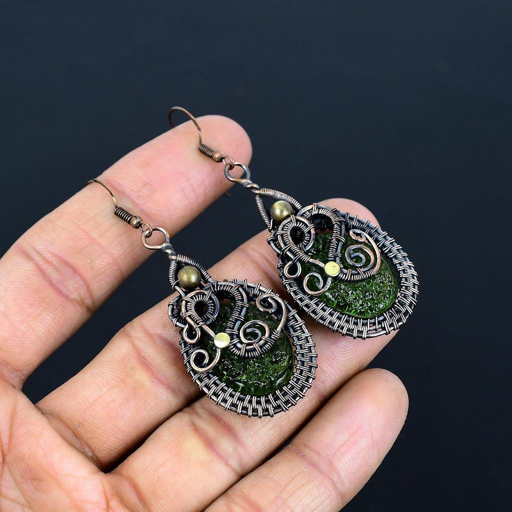 Серьги из молдавита, ювелирные изделия из драгоценных камней, обернутые медной проволокой 999 пробы, серьги ручной работы ко Дню матери