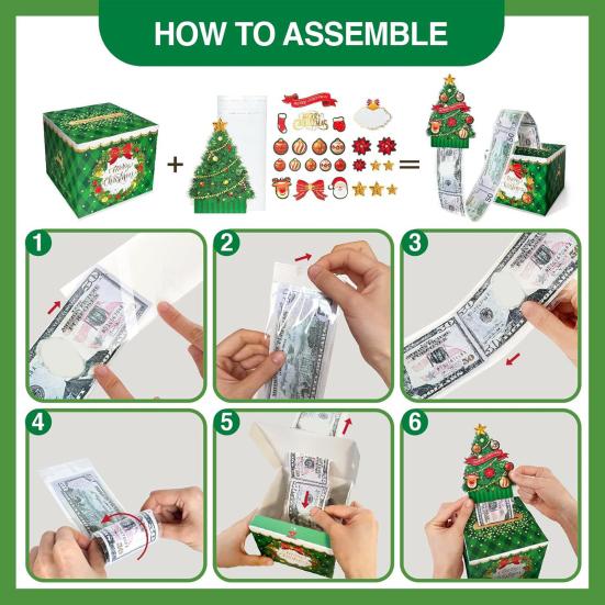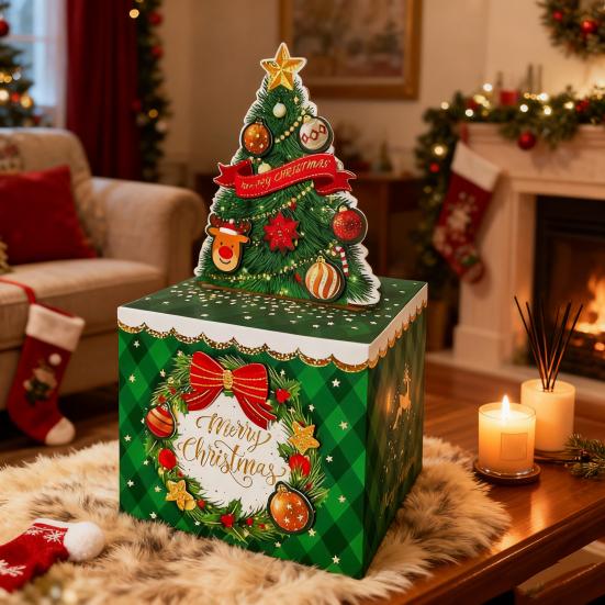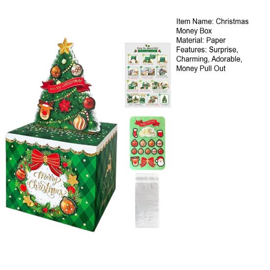 Рождественская копилка для денежного подарка, вытягиваемая коробка 'Счастливого Рождества' с 60 прозрачными пакетами, праздничная коробка для наличных 'Сделай сам', держатель для денег-сюрприза для