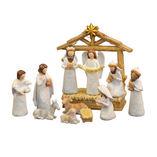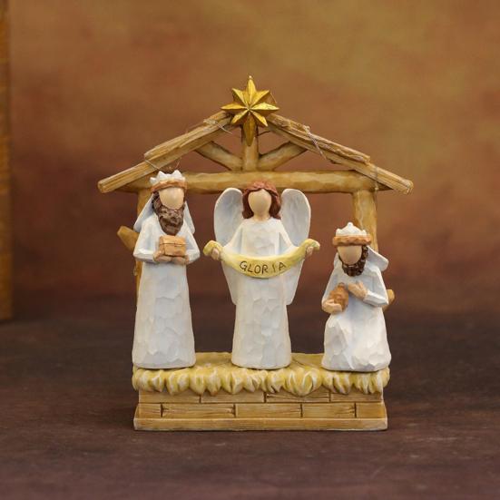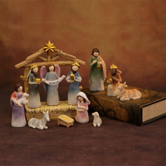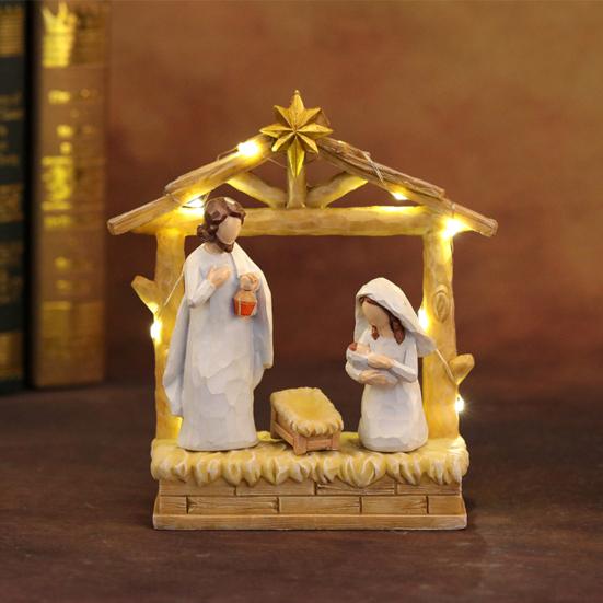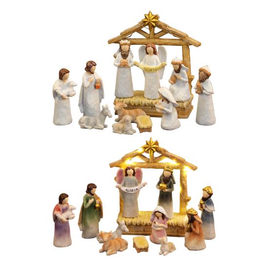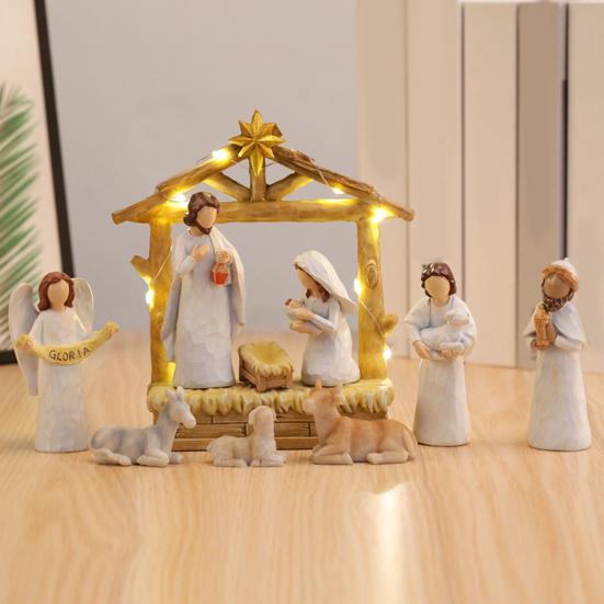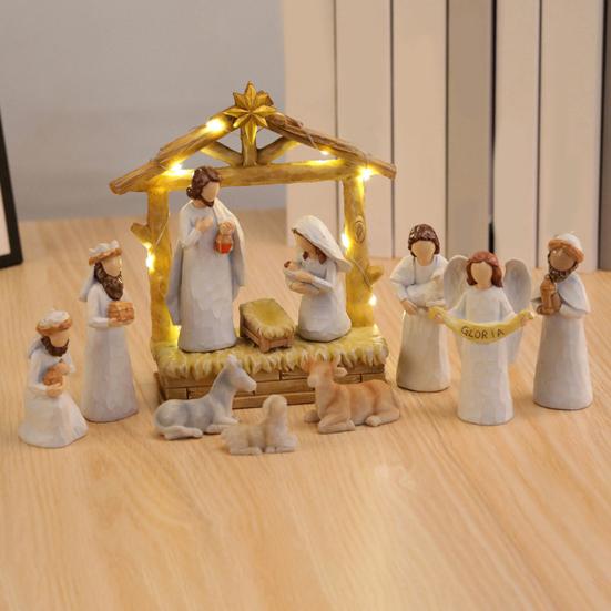 12 шт. Светодиодный набор рождественского вертепа из смолы, рождественские фигурки яслей и ангелов со звездным светом, праздничный настольный декор для дома, церкви