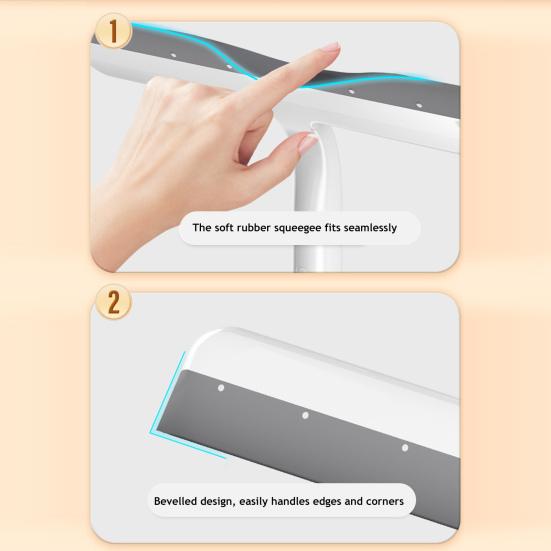 Этот стеклоочиститель с мягким скребком легко удаляет грязь, не оставляя следов и разводов.. Его многофункциональный дизайн делает его идеальным для чистки душевых окон, зеркал в ванной комнате и столов, добавляя универсальности вашей программе уборки..