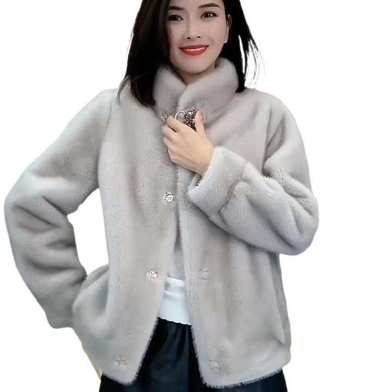 Новая осенне-зимняя куртка из искусственной кожи под норку с коротким воротником-стойкой для женщин среднего и пожилого возраста