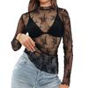 Женский сексуальный сетчатый топ с полувысоким воротником и прозрачными длинными рукавами