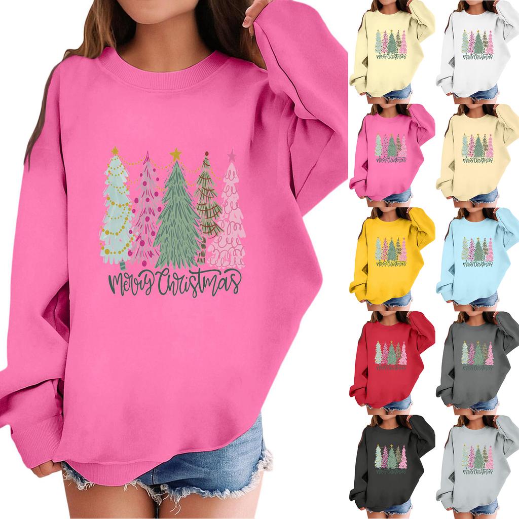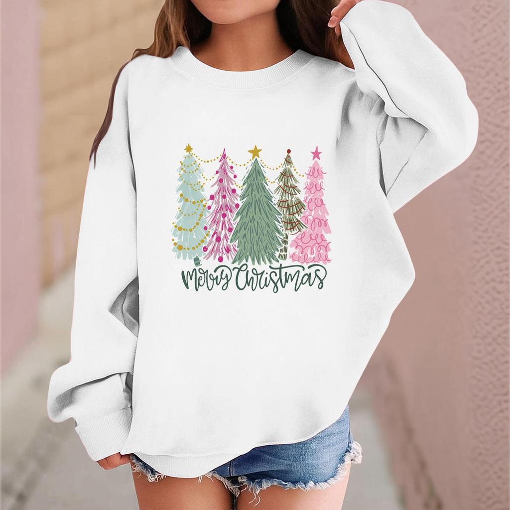 Детский модный повседневный пуловер с длинными рукавами и свободного кроя с рождественским принтом