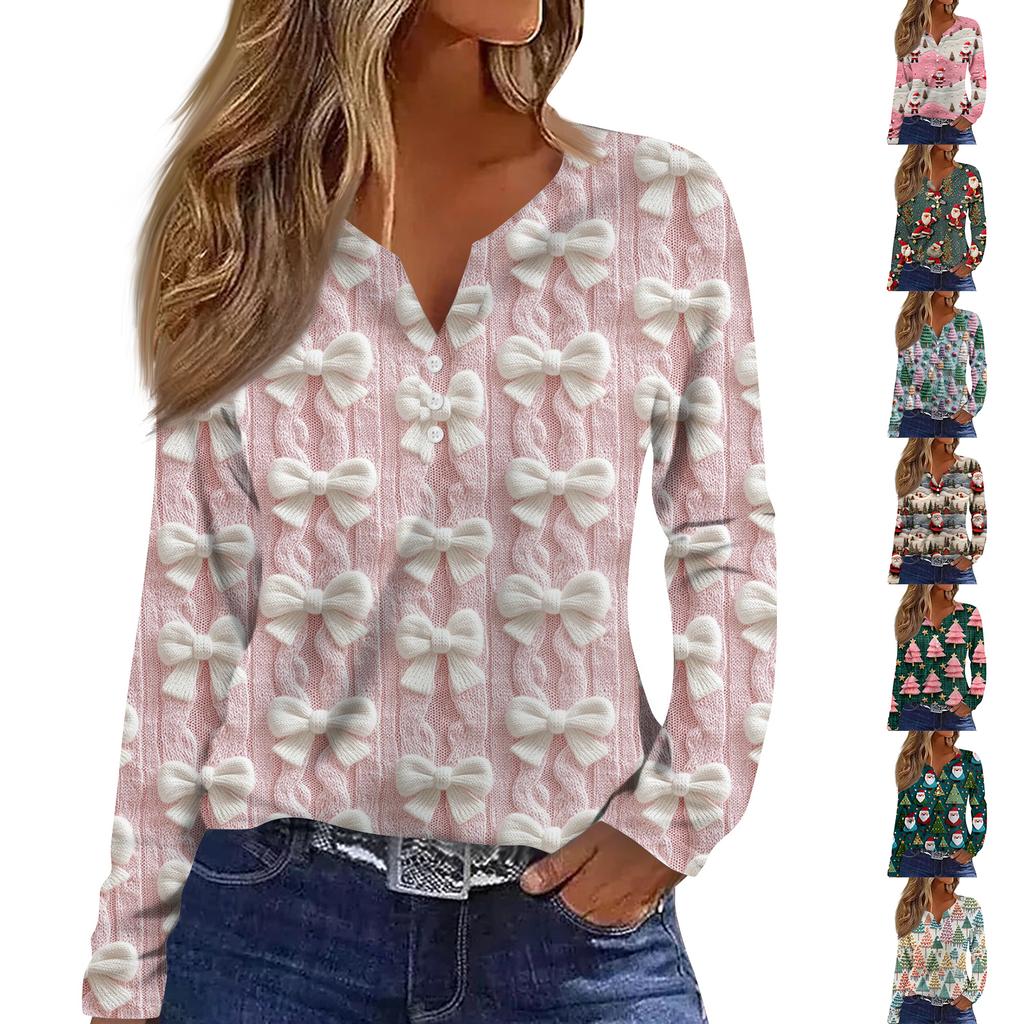 Женская модная повседневная футболка с V-образным вырезом, на пуговицах, с длинным рукавом, с рождественским принтом — купить товар онлайн с бесплатной доставкой по всему миру!