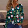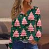 Женская модная повседневная футболка с V-образным вырезом, на пуговицах, с длинным рукавом, с рождественским принтом